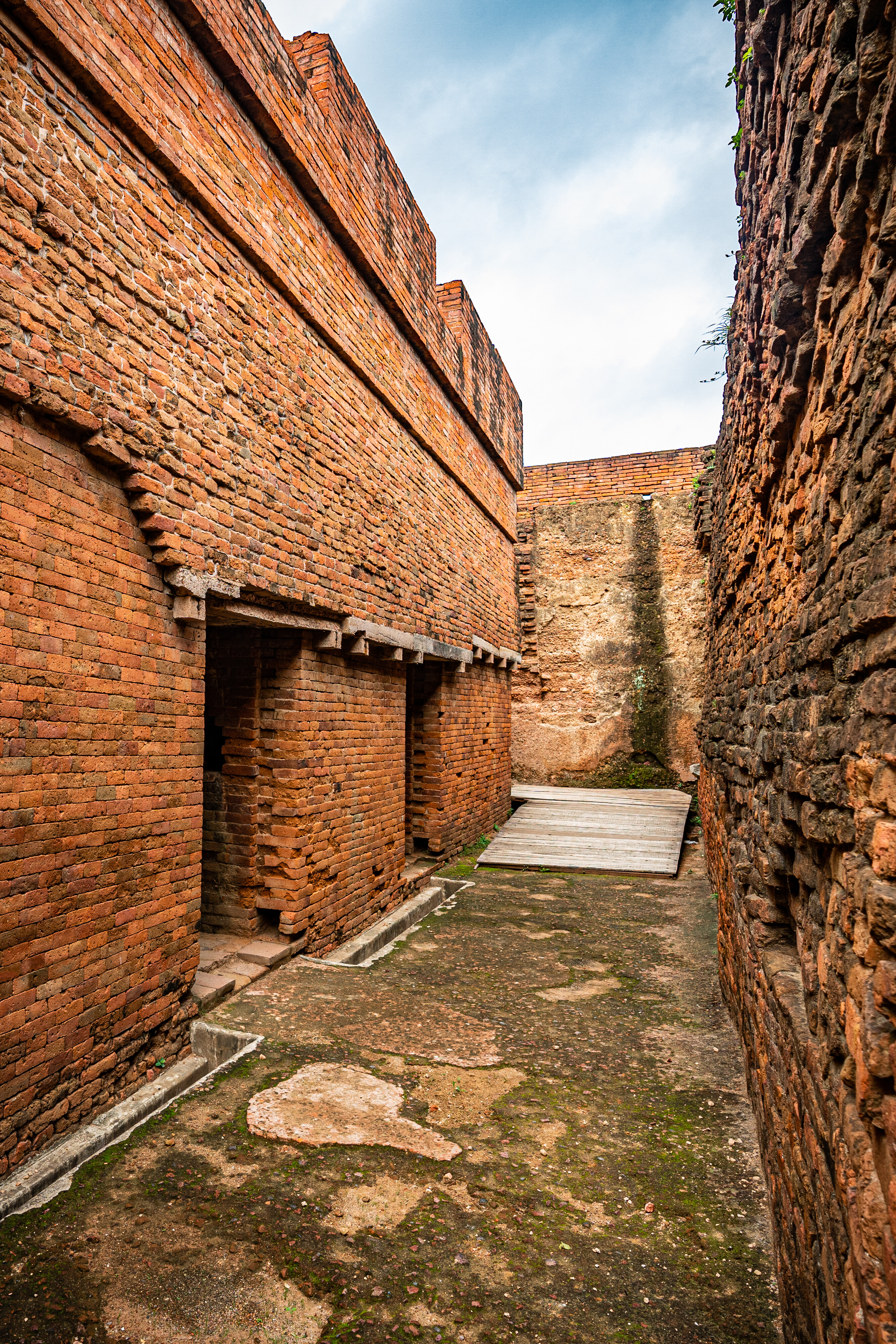 Nalanda is about 90 km southeast of Patna. Although its history goes back to the times of the Buddha, the university at Nalanda was founded in the 5th century CE, and it flourished for the next 700 years. Its decline began in the late Pala period, but the final blow was the invasion by Bakhtiyar Khilji around 1200 CE. The subjects that were taught at Nalanda included Buddhist scriptures (of both the Mahayana and Hinayana schools), philosophy, theology, metaphysics, logic, grammar, astronomy and medicine. Chinese travellers Hiuen-Tsang and I-Tsing had written detailed accounts about the university.