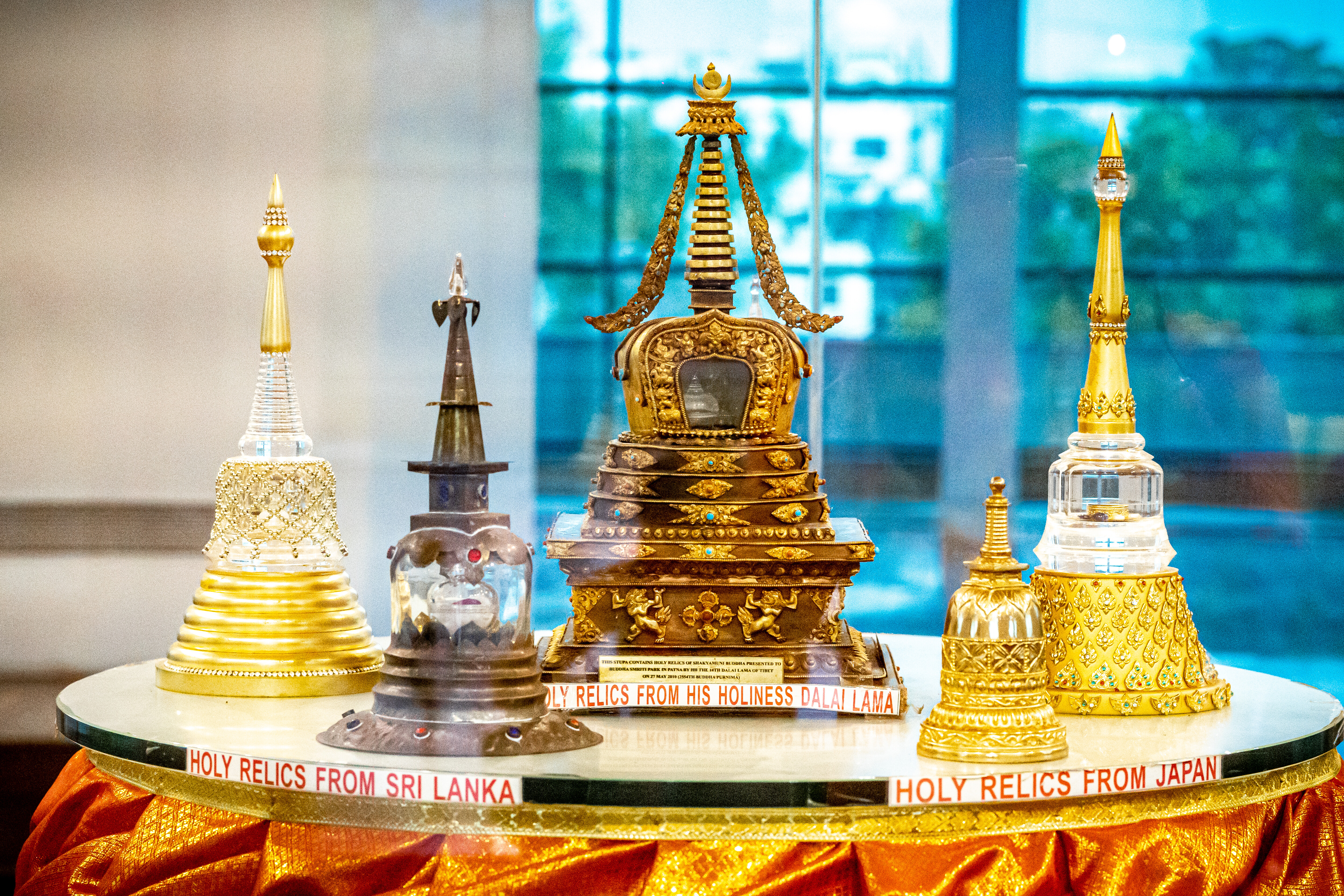 The 200-ft-high Pataliputra Karuna Stupa is a circular structure that is the most prominent feature of the park. It has several entrances and houses a relic of Lord Buddha, which is one of the eight original relics excavated from Vaishali, in a glass enclosure. There are several other relics, brought by His Holiness the Dalai Lama and several monks from Thailand, Myanmar, Japan, South Korea and Sri Lanka, kept in different caskets. The meditation centre is based on the plans of the Nalanda University monasteries. It has 60 cells and one can view the beautiful stupa from each of them. Along with artefacts, there are audio-visual and multimedia presentations about the life and teachings of Buddha in the museum.