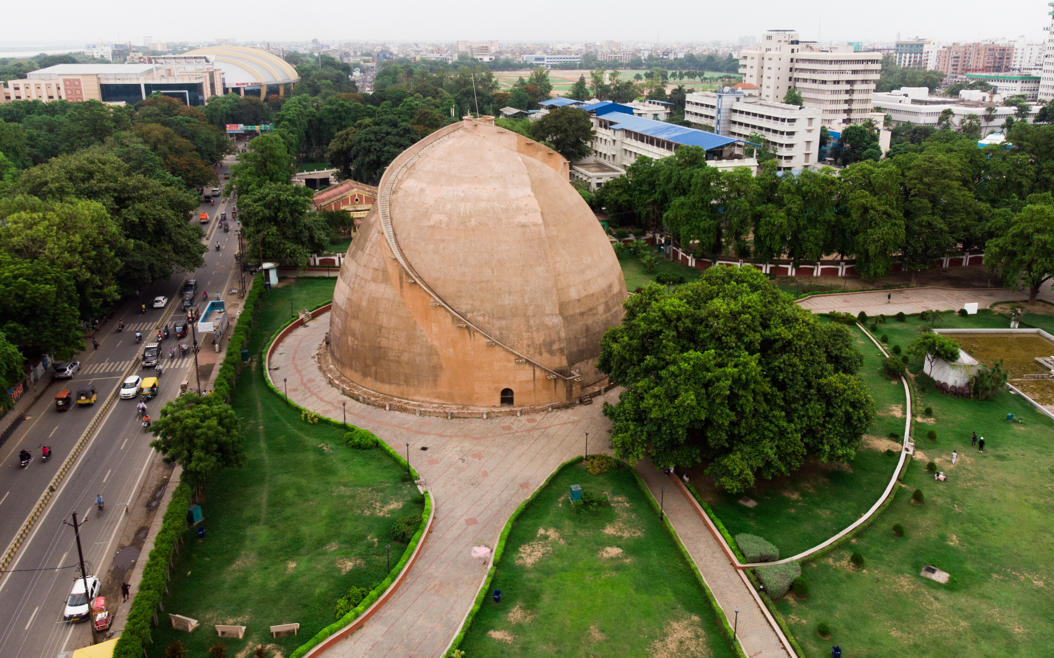Golghar, an enormous granary, was built by Captain John Garstin for British army in 1786, after the terrible impact of 1770 famine. The winding stairway around this monument offers a brilliant view of the city and the Ganga flowing nearby.