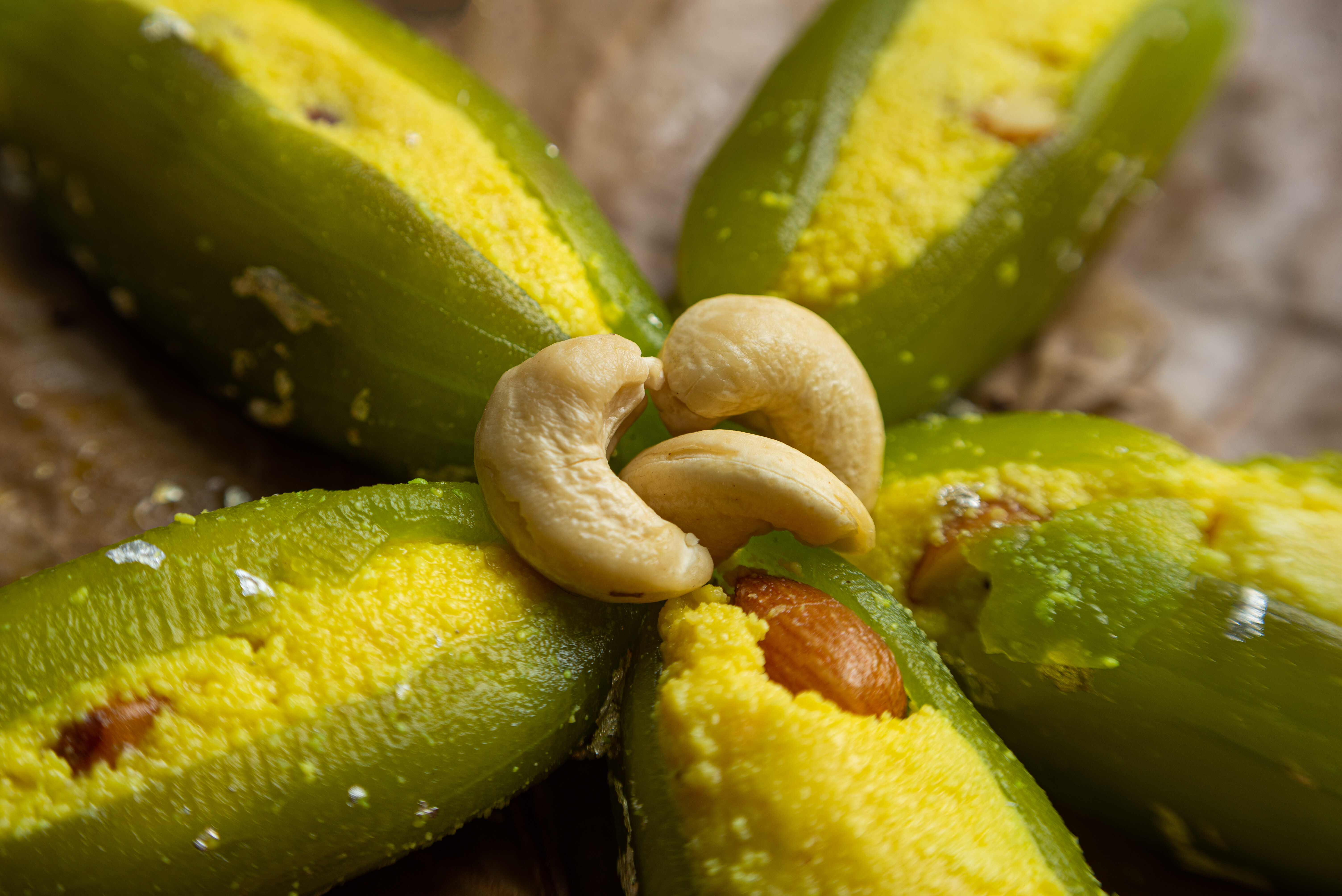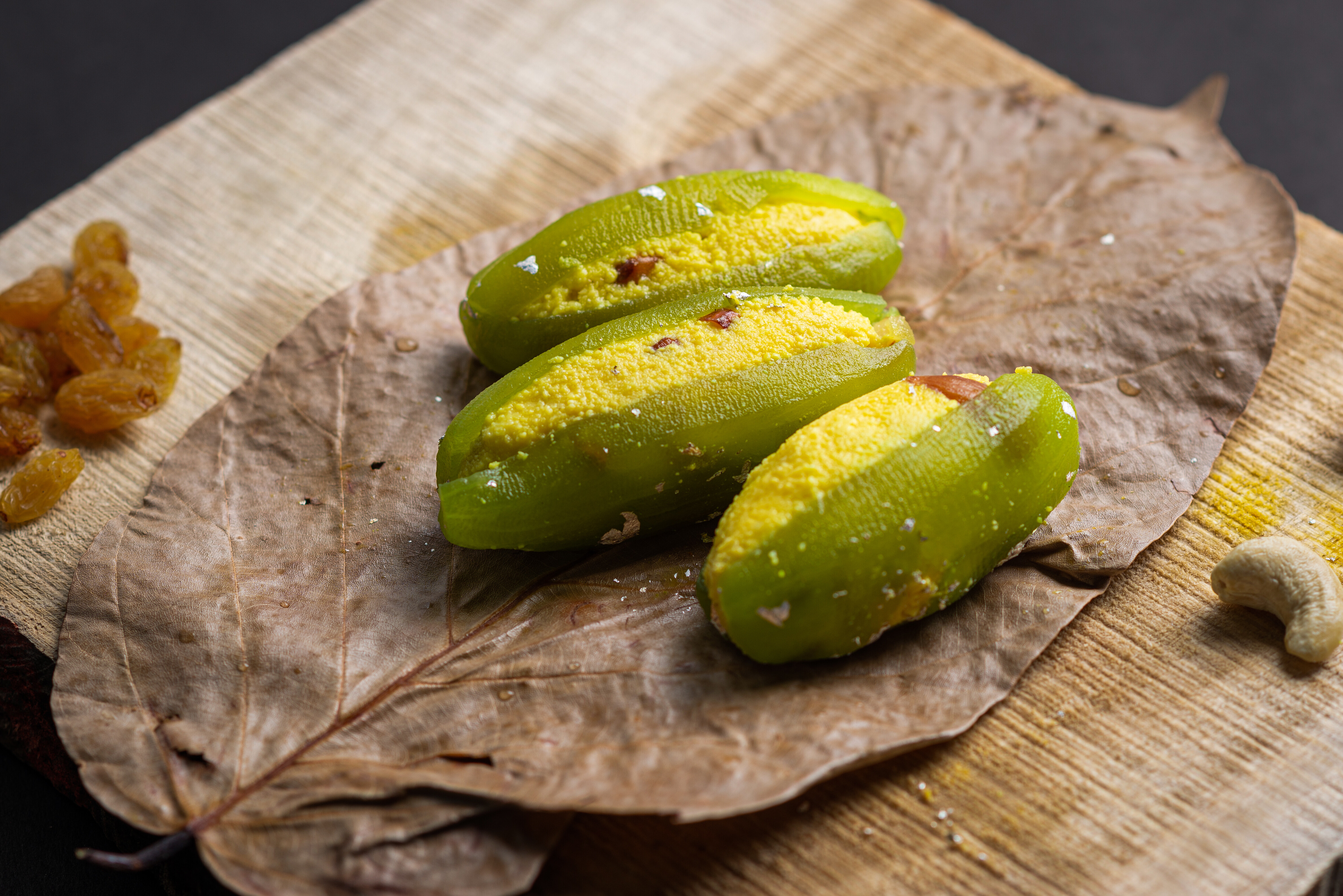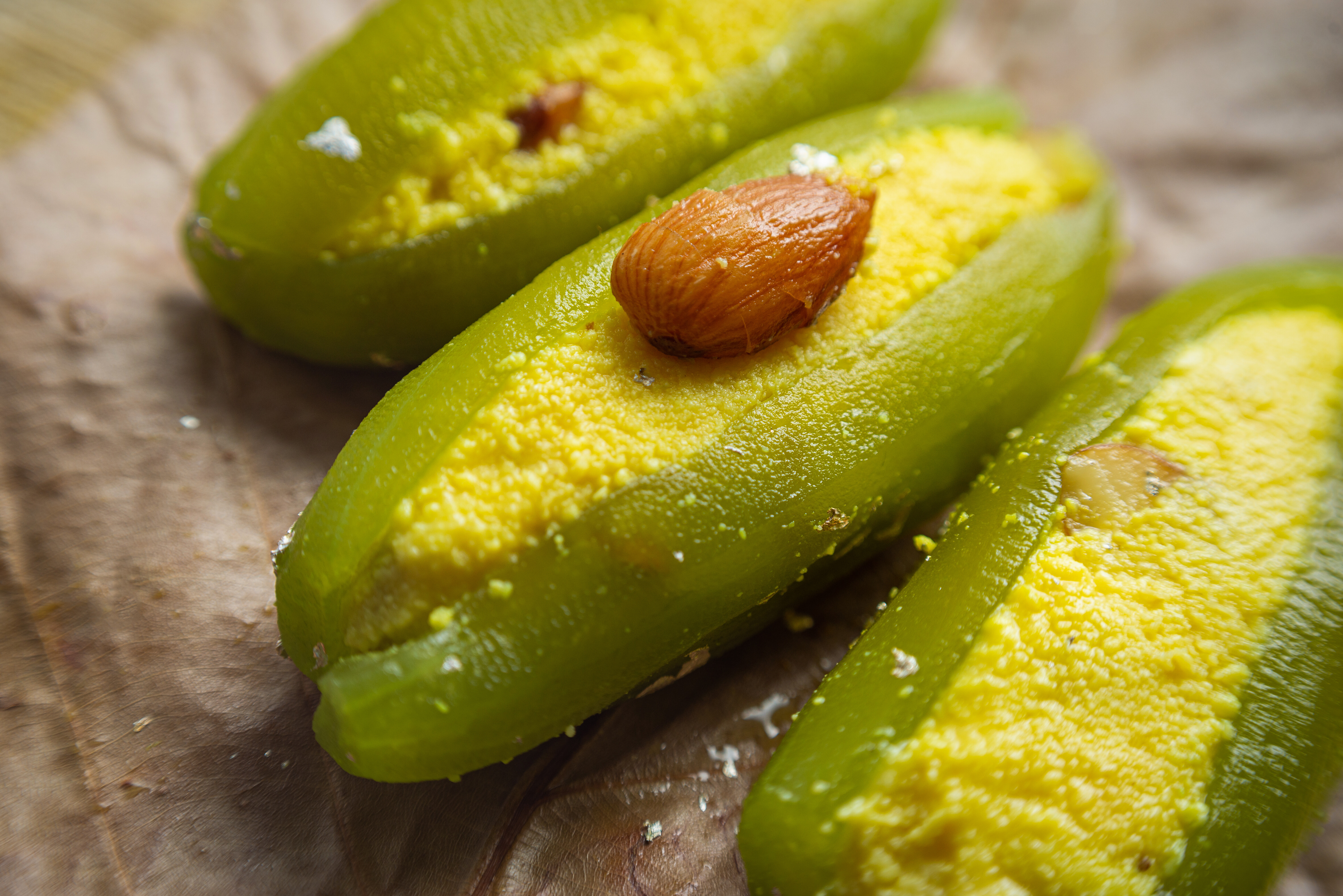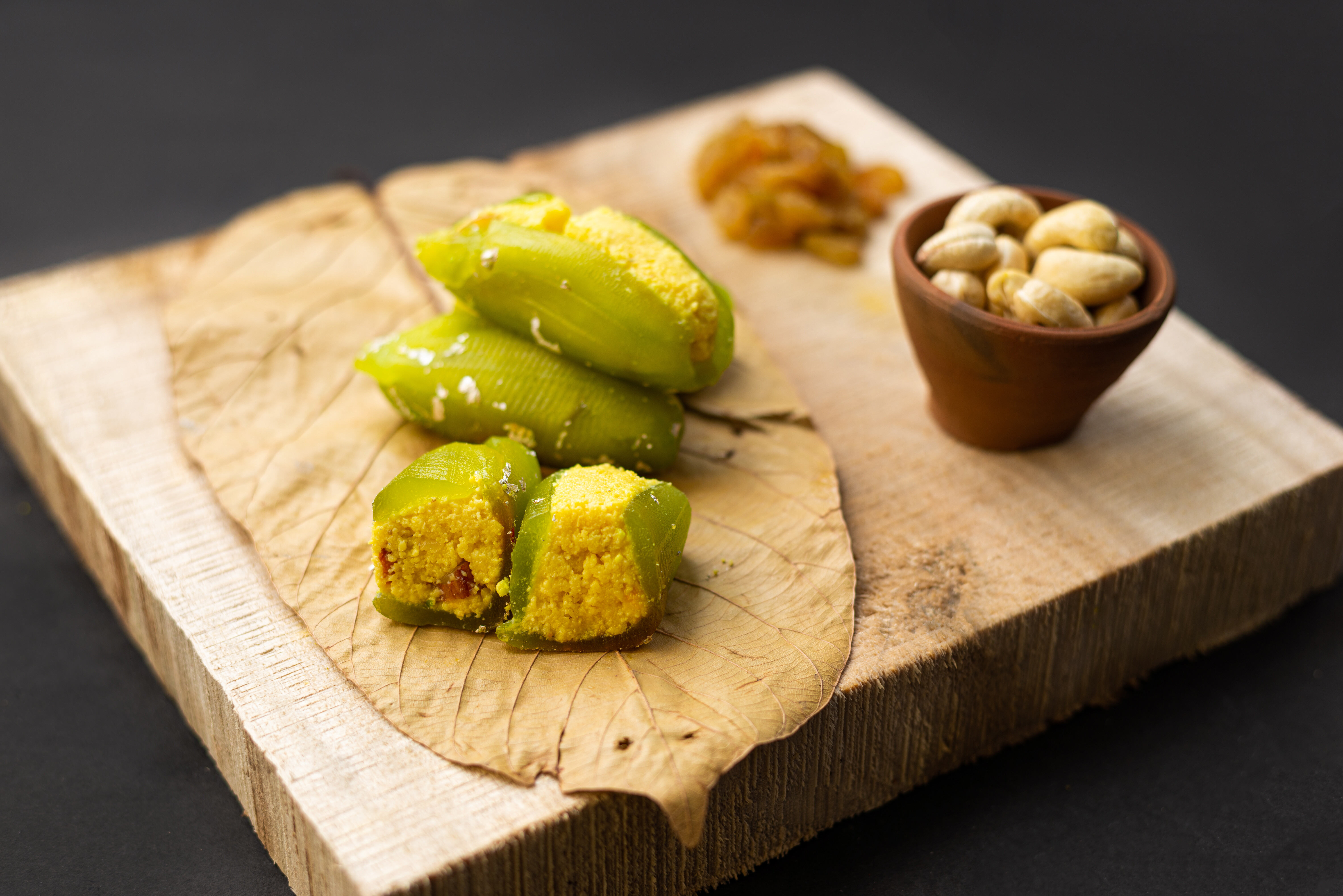 Parwal ki mithai is cooked by stuffing the pointed gourd with khoya giving it the right balance of sweet and salty effect.